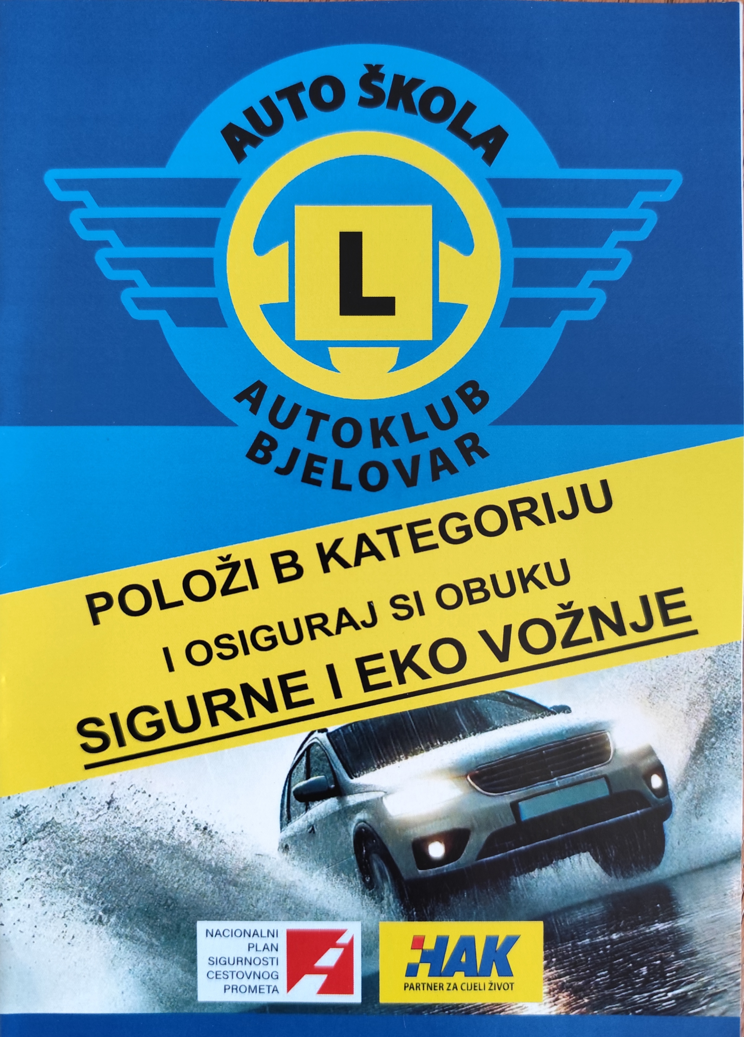 NOVOST: POKLON KANDIDATIMAAutoklub Bjelovar nagrađuje svakog svog polaznika autoškole sa OBITELJSKIM ČLANSTVOM U HAK-u nakon uspješnog završetka osposobljavanja u autoškoli i svaki polazniknakon upisa, dobije brandirani poklon dobrodošlice (majica / kapa / alu boca za vodu,...).